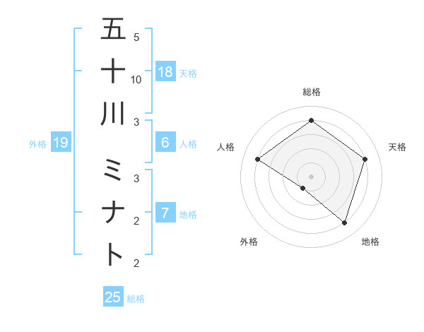 五十川 ミナトさんの外格は19画の1点!