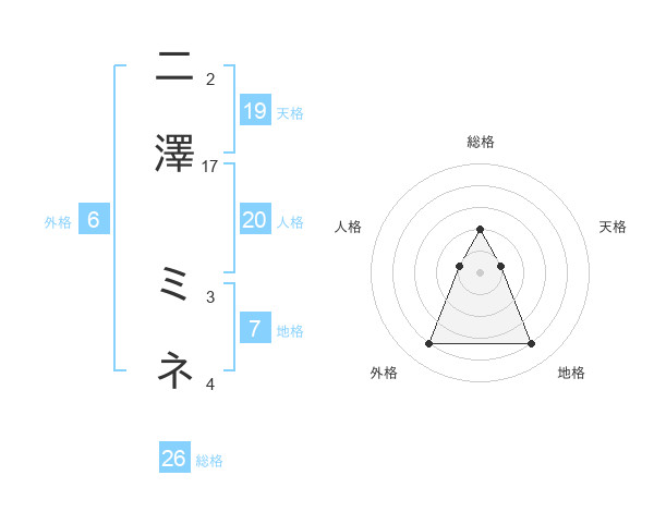 二澤 ミネさんの総格は26画の2点!