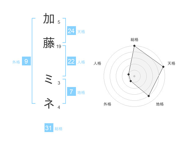 加藤 ミネさんを姓名の画数から五運を鑑定