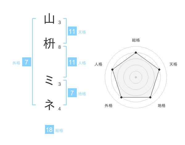 山枡 ミネさんの天格は11画の4点!
