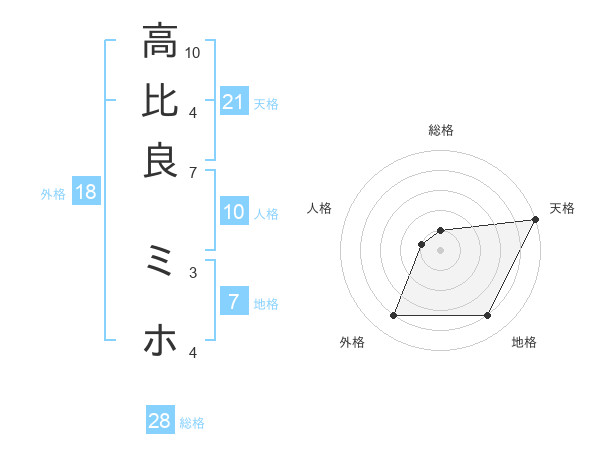 高比良 ミホさんの総格は28画の1点!