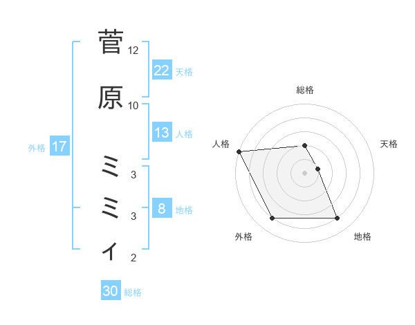 菅原 ミミィさんを姓名の画数から五運を鑑定
