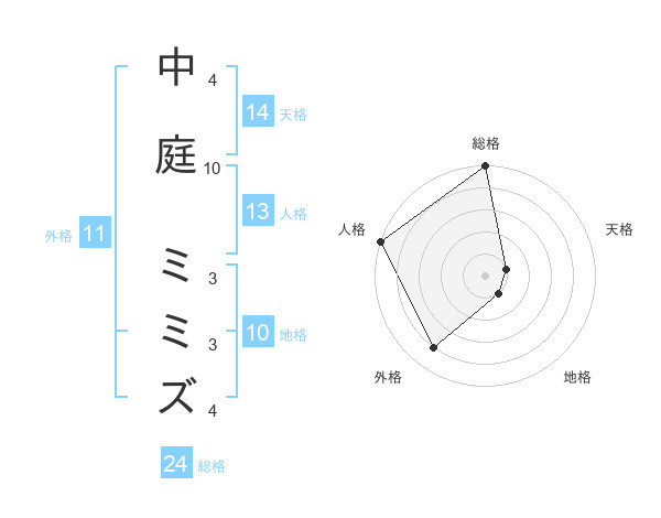 中庭 ミミズさんの総格は24画の5点!