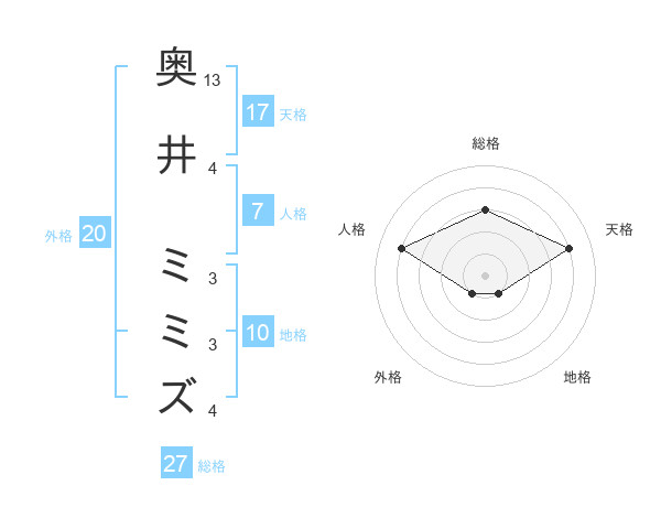 奥井 ミミズさんを姓名の画数から五運を鑑定