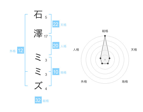 石澤 ミミズさんを姓名の画数から五運を鑑定