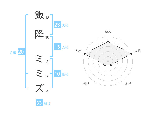飯降 ミミズさんを姓名の画数から五運を鑑定