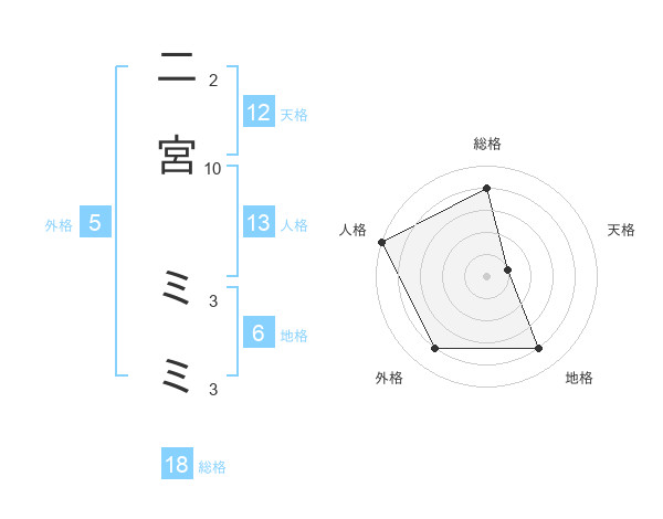 二宮 ミミさんを姓名の画数から五運を鑑定
