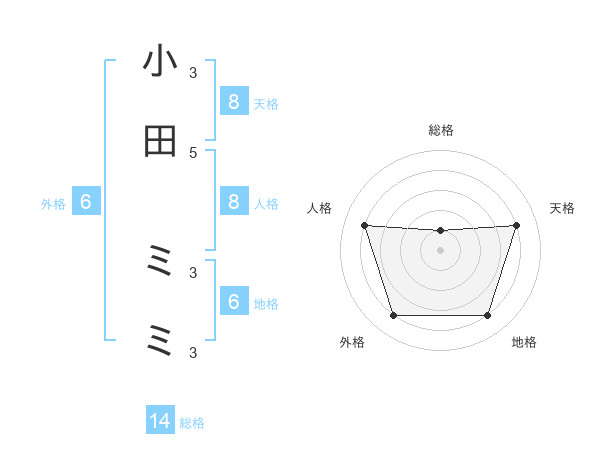 小田 ミミさんの天格は8画の4点!