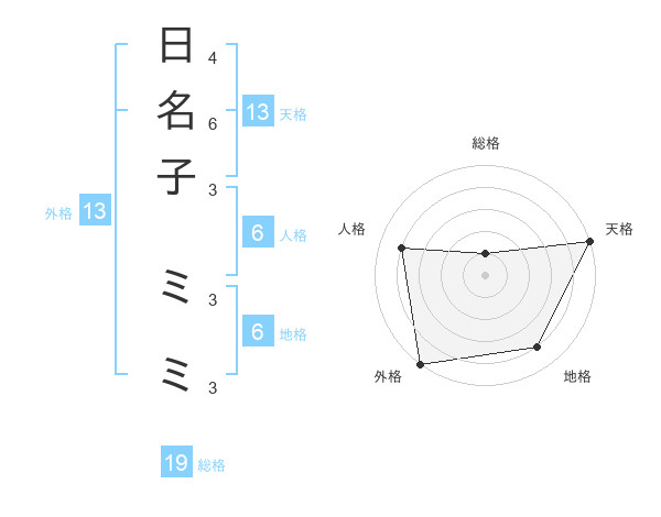 日名子 ミミさんの天格は13画の5点!