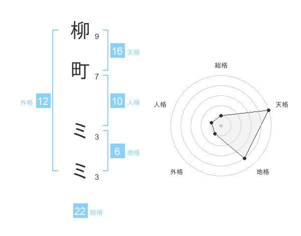 柳町 ミミさんを姓名の画数から五運を鑑定