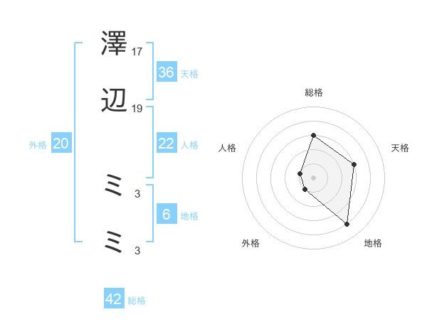 澤辺 ミミさんの総格は42画の3点!