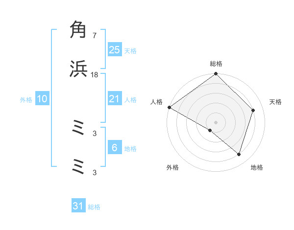 角浜 ミミさんの総格は31画の5点!