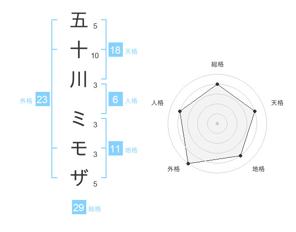 五十川 ミモザさんを姓名の画数から五運を鑑定
