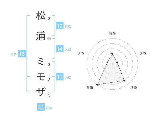松浦 ミモザさんの天格は19画の1点!
