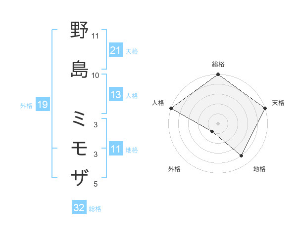 野島 ミモザさんを姓名の画数から五運を鑑定