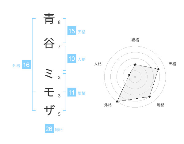 青谷 ミモザさんを姓名の画数から五運を鑑定