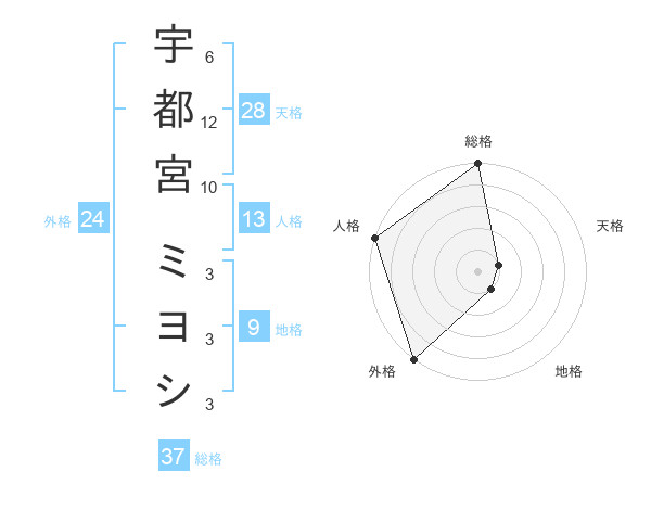 宇都宮 ミヨシさんを姓名の画数から五運を鑑定