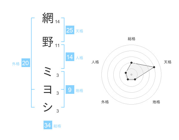 網野 ミヨシさんの天格は25画の4点!