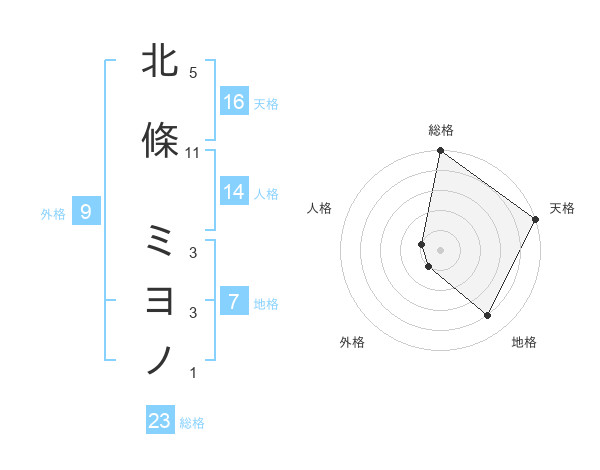 北條 ミヨノさんの天格は16画の5点!