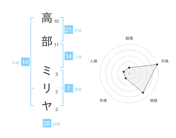 高部 ミリヤさんを姓名の画数から五運を鑑定
