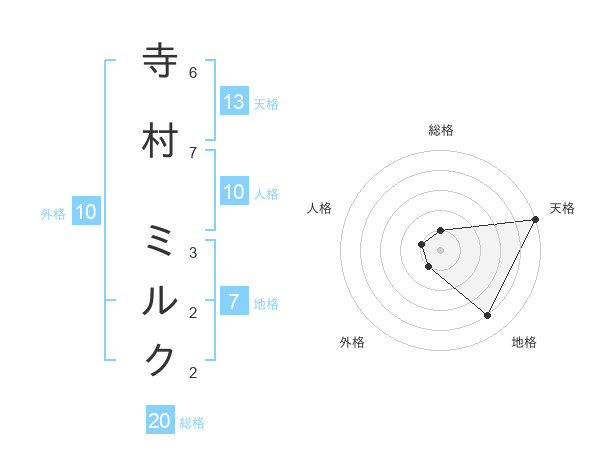 寺村 ミルクさんの天格は13画の5点!