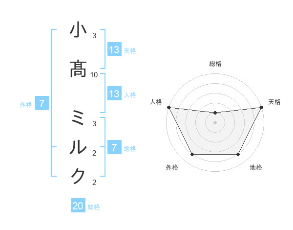 小髙 ミルクさんの天格は13画の5点!