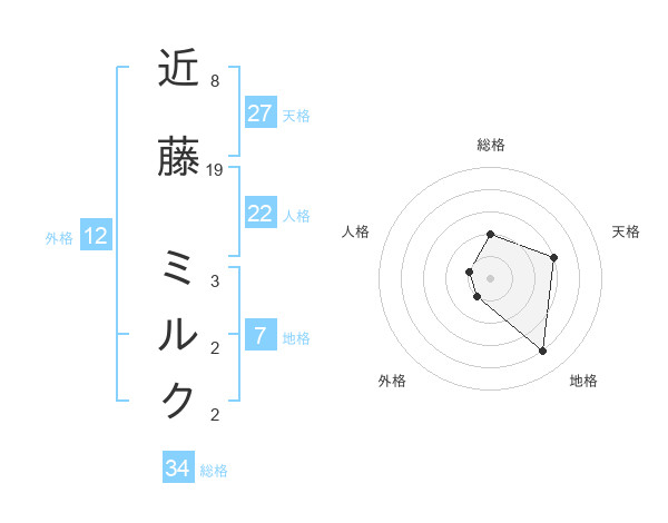 近藤 ミルクさんを姓名の画数から五運を鑑定