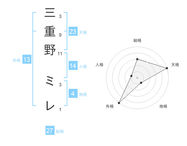 三重野 ミレさんを姓名の画数から五運を鑑定