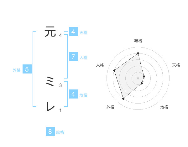 元 ミレさんの総格は8画の4点!