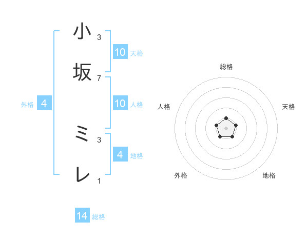 小坂 ミレさんの総格は14画の1点!