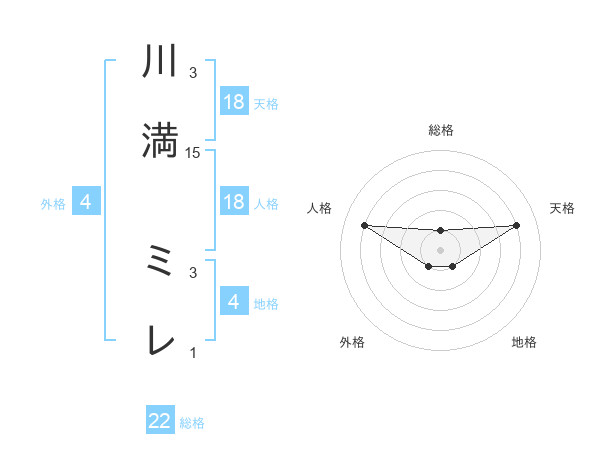 川満 ミレさんの天格は18画の4点!