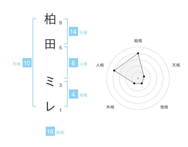 柏田 ミレさんの総格は18画の4点!