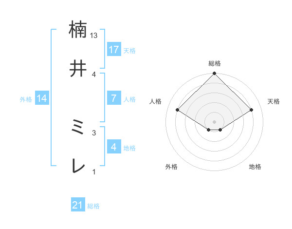 楠井 ミレさんを姓名の画数から五運を鑑定