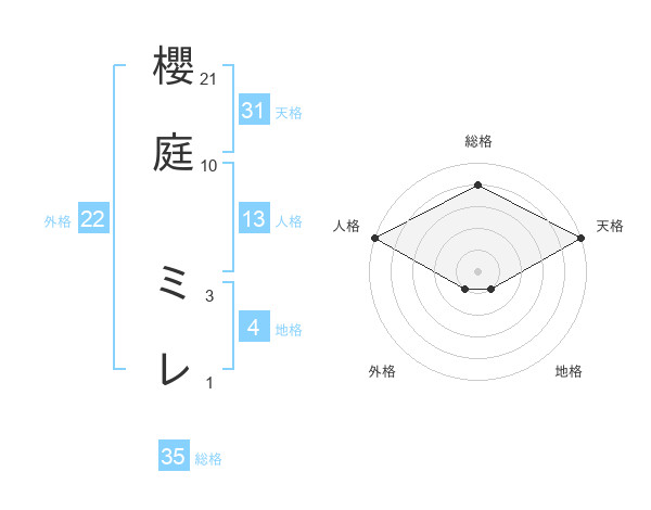 櫻庭 ミレさんを姓名の画数から五運を鑑定