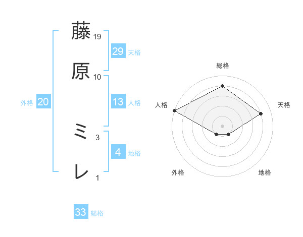藤原 ミレさんを姓名の画数から五運を鑑定