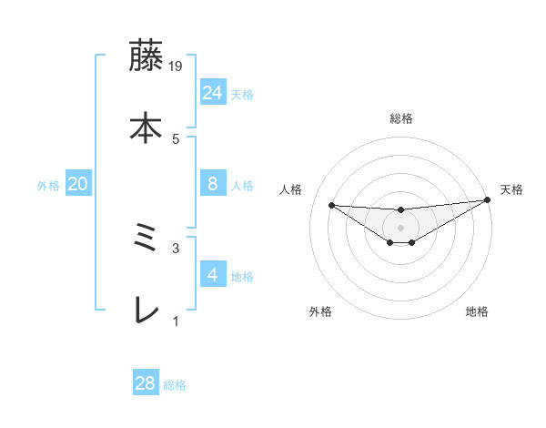 藤本 ミレさんの天格は24画の5点!