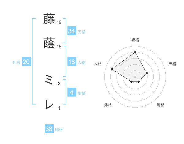 藤蔭 ミレさんの総格は38画の4点!