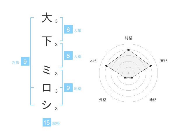 大下 ミロシさんを姓名の画数から五運を鑑定