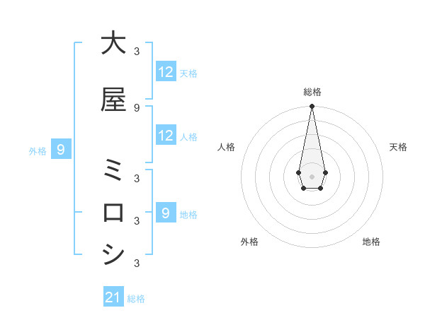 大屋 ミロシさんを姓名の画数から五運を鑑定