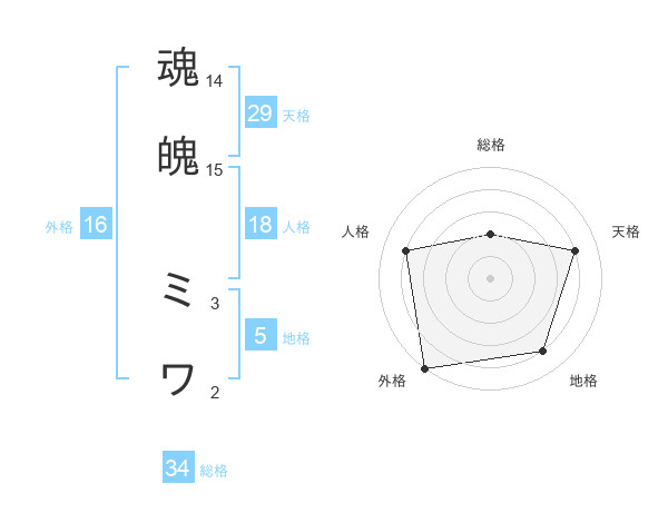魂魄 ミワさんの総格は34画の2点!