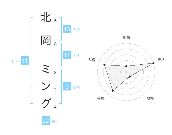 北岡 ミングさんを姓名の画数から五運を鑑定