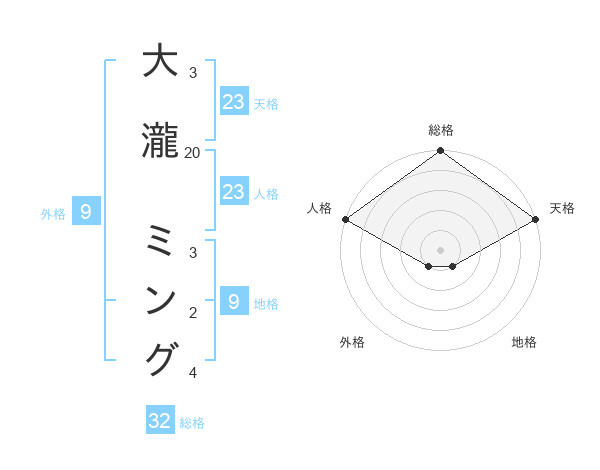 大瀧 ミングさんを姓名の画数から五運を鑑定