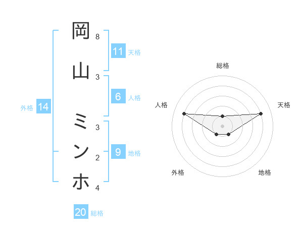 岡山 ミンホさんを姓名の画数から五運を鑑定