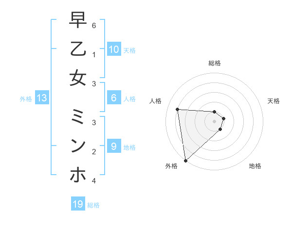早乙女 ミンホさんの外格は13画の5点!