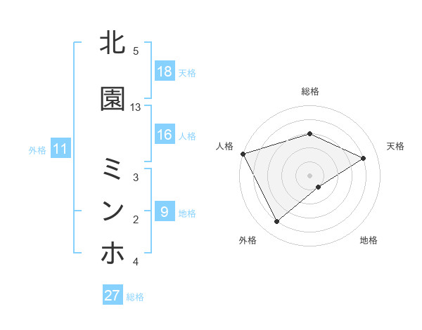 北園 ミンホさんを姓名の画数から五運を鑑定