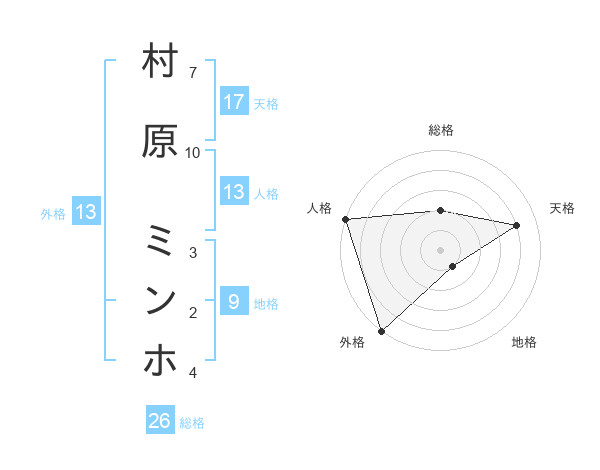 村原 ミンホさんの外格は13画の5点!