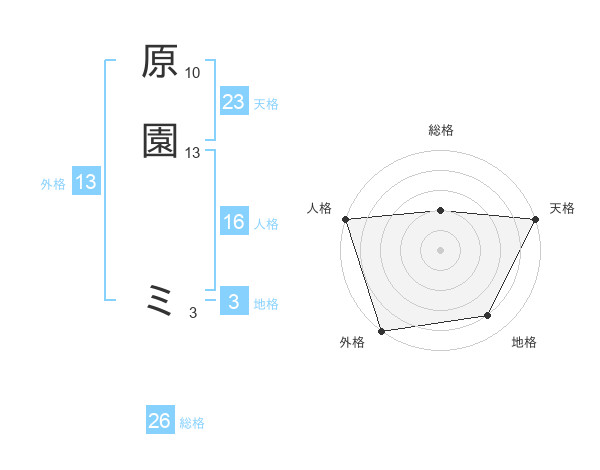 原園 ミさんの総格は26画の2点!