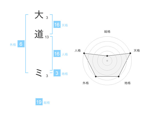 大道 ミさんの天格は16画の5点!