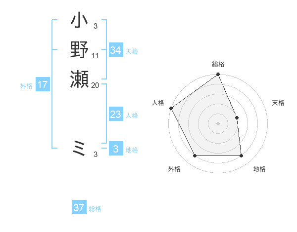 小野瀬 ミさんを姓名の画数から五運を鑑定