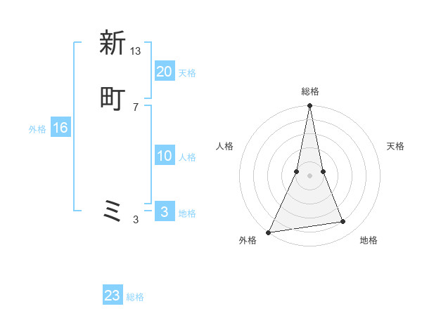 新町 ミさんの総格は23画の5点!